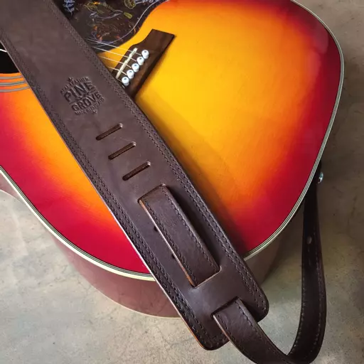 The BS43 Leather Guitar Strap is made from a single piece of full-grain vegetable-tanned Italian leather. This leather has a beautiful, unique natural grain and patina that will only improve with age. It even has a proper leather smell. This leather comes from only the best part of the cowhide where it has the strongest grain. Following tanning, the leather has been softened, resulting in a strap that holds your instrument well and gives maximum comfort.